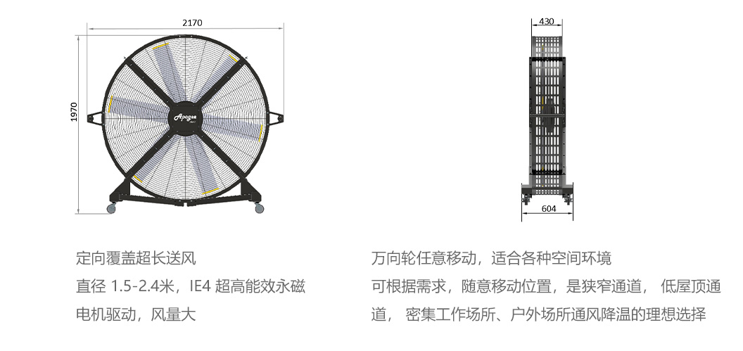 可根據(jù)需求,隨意移動位置,是狹窄通道, 低屋頂通道, 密集工作場所、戶外場所通風降溫的理想選擇